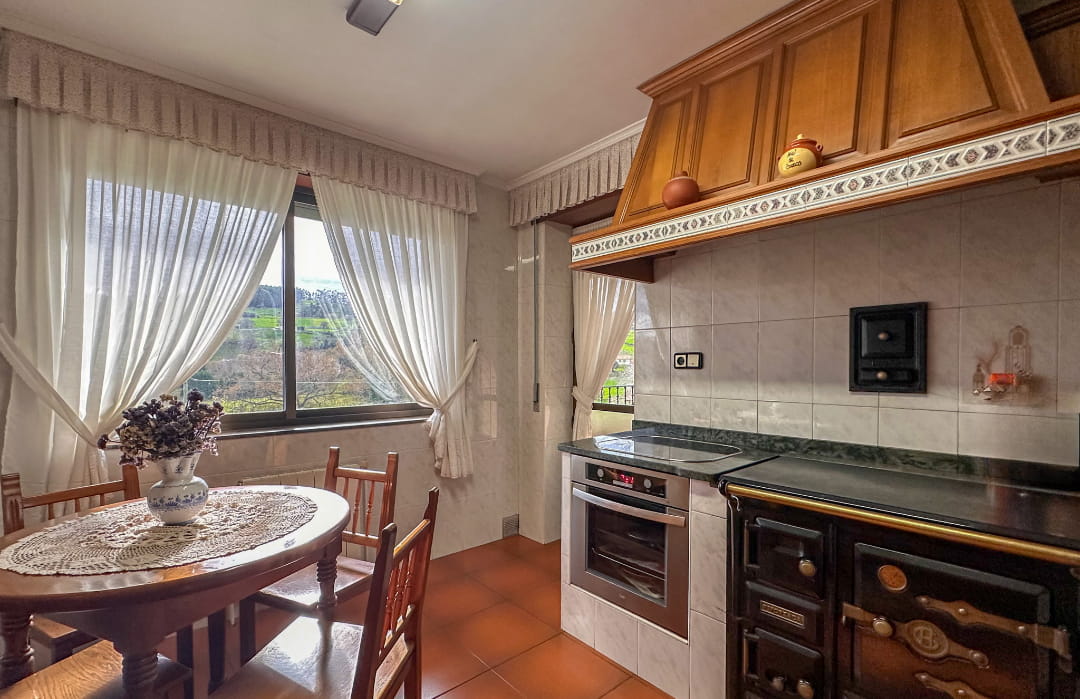 Distribuido en PLANTA BAJA: antigua cuadra diáfana que comunica la planta principal con ascensor; PLANTA PRINCIPAL: recibidor, salón – comedor con salida a terraza, cocina amueblada y equipada con terraza, 3 dormitorios y baño adaptado; ÁTICO: diáfano con preinstalación para un baño. Calefacción. Garaje para 2 coches adosado a la vivienda. Jardín de  4.000 m². Antigüedad del año 1991. Buen estado de conservación. Orientación sur. Excelente ubicación. Situado a 5 minutos de la autovía, 10 minutos de Santillana del Mar y 15 minutos de Suances.